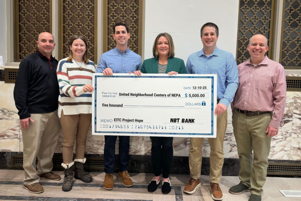 United Neighborhood Centers of Northeastern Pennsylvania (UNC) is pleased to announce the receipt of a $5,000 donation from NBT Bank in support of its Project Hope Summer Camp program. The contribution was made possible through Pennsylvania’s Educational Improvement Tax Credit Program (EITC), which encourages businesses to invest in educational opportunities by providing tax credits for donations to eligible organizations.