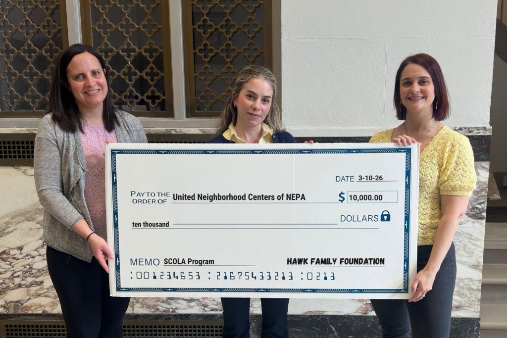 United Neighborhood Centers of Northeastern Pennsylvania (UNC) is grateful to receive a $10,000 grant from the Hawk Family Foundation in support of its SCOLA program, helping expand educational opportunities for adult learners in our community.